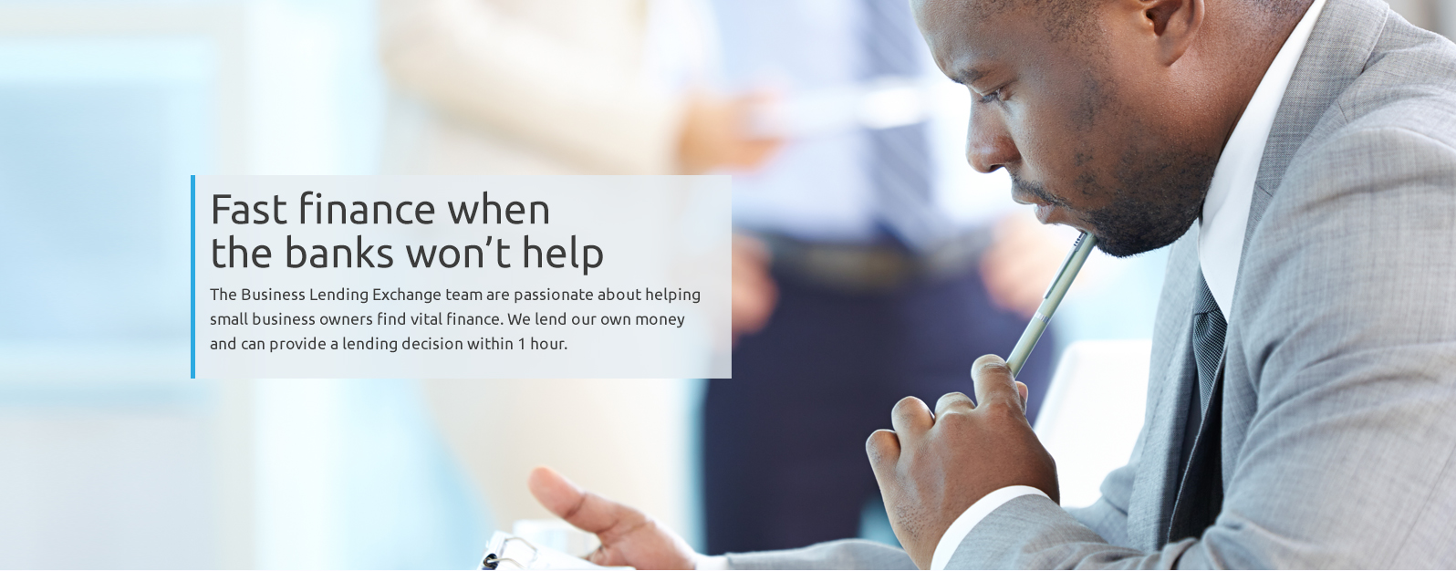 The Business Lending Exchange team have over 30 years’ experience in business finance and are passionate about helping small business owners find vital finance. We lend our own money and can provide a lending decision to small business owners within 1 hour.